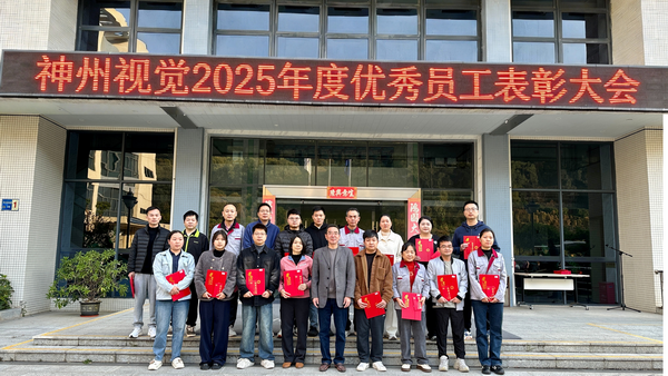 2026年1月清晨,神州视觉2025年度优秀员工颁奖仪式在升旗仪式后举行。回望2025年,优秀员工以责任与专业推动公司发展,值得全员致敬。颁奖环节,主持人宣读名单,董事长亲手为获奖者颁发荣誉证书并亲切合影。仪式在掌声中落幕,榜样力量将激励全体员工新岁拼搏实干,共筑公司2026年新辉煌。